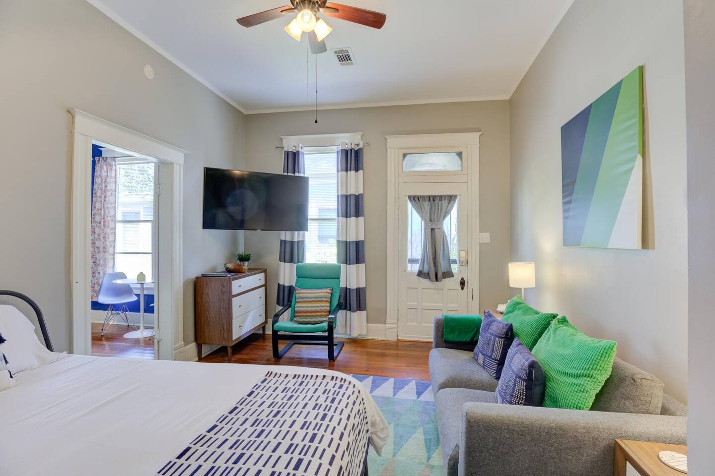 Perfect for solo travelers and adventurous couples who are here to soak up the city in all its glory. I'm biased, but I believe this is the absolute best location for an Airbnb in Memphis. Fantastic restaurants, coffee, live entertainment, and night life are a short walk away. Rental bikes and scooters are nearby for your convenience. This suite has everything you need--washer, dryer, microwave, fridge, stove, and a huge Smart TV to view any of your favorite apps. Thanks for visiting our city!